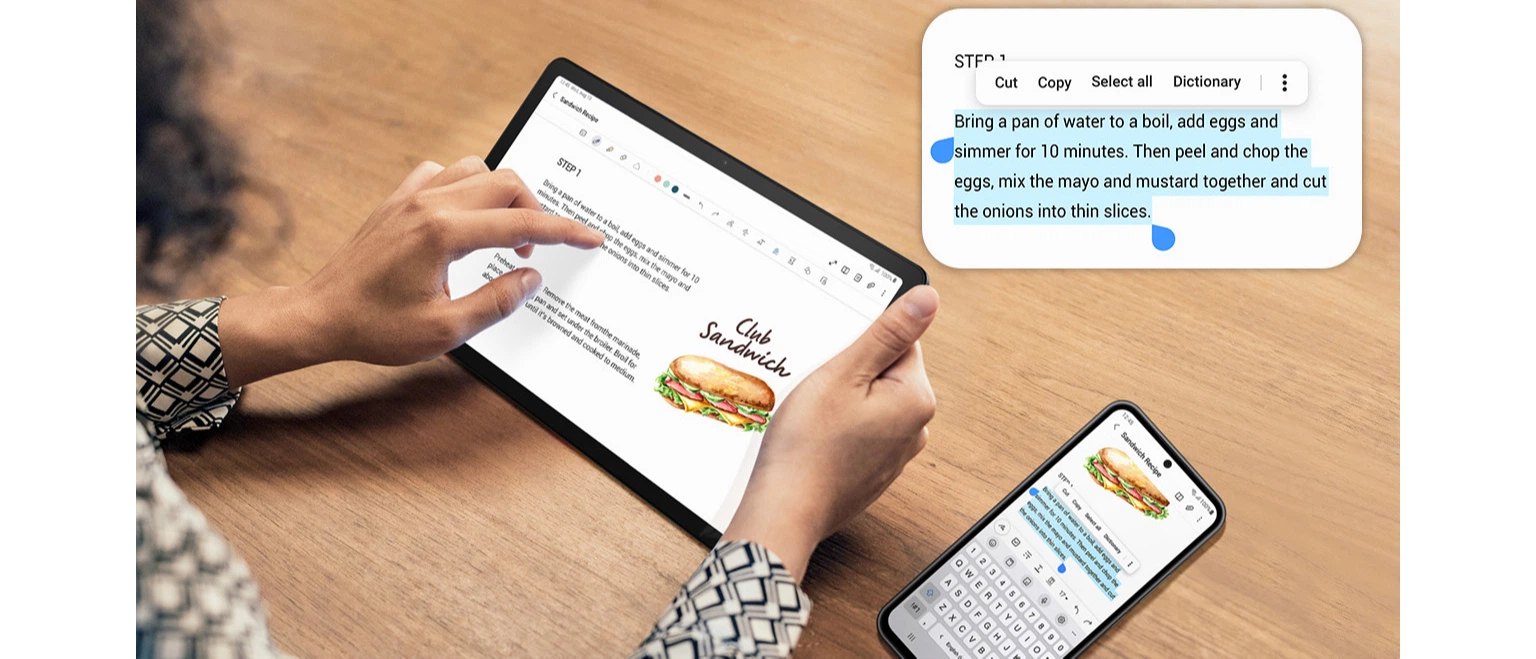 Продолжайте с того места, где вы остановились, когда вам это нужно. Просто войдя в ту же аккаунт Samsung, вы можете вернуться к своим заметкам или поиску в Интернете, не начиная все сначала, и свободно переключаться между двумя устройствами.