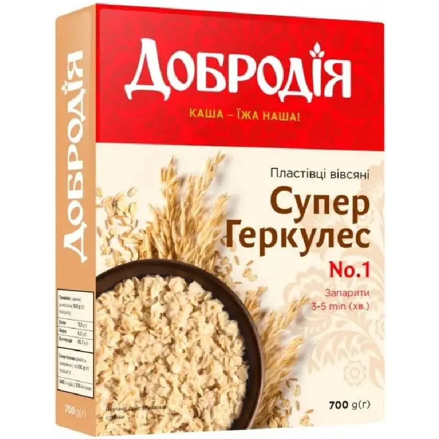 Хлопья овсяные Добродія супер Геркулес вкусный, здоровый и полезный завтрак как для ребенка, так и для всей семьи.