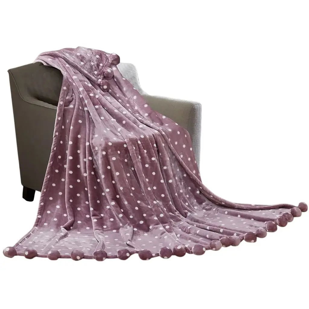 Плед Love You украшен элегантными помпонами. Удивительно мягкий и приятный, имеет нежный цвет с рисунком, будет красивым украшением любого интерьера.