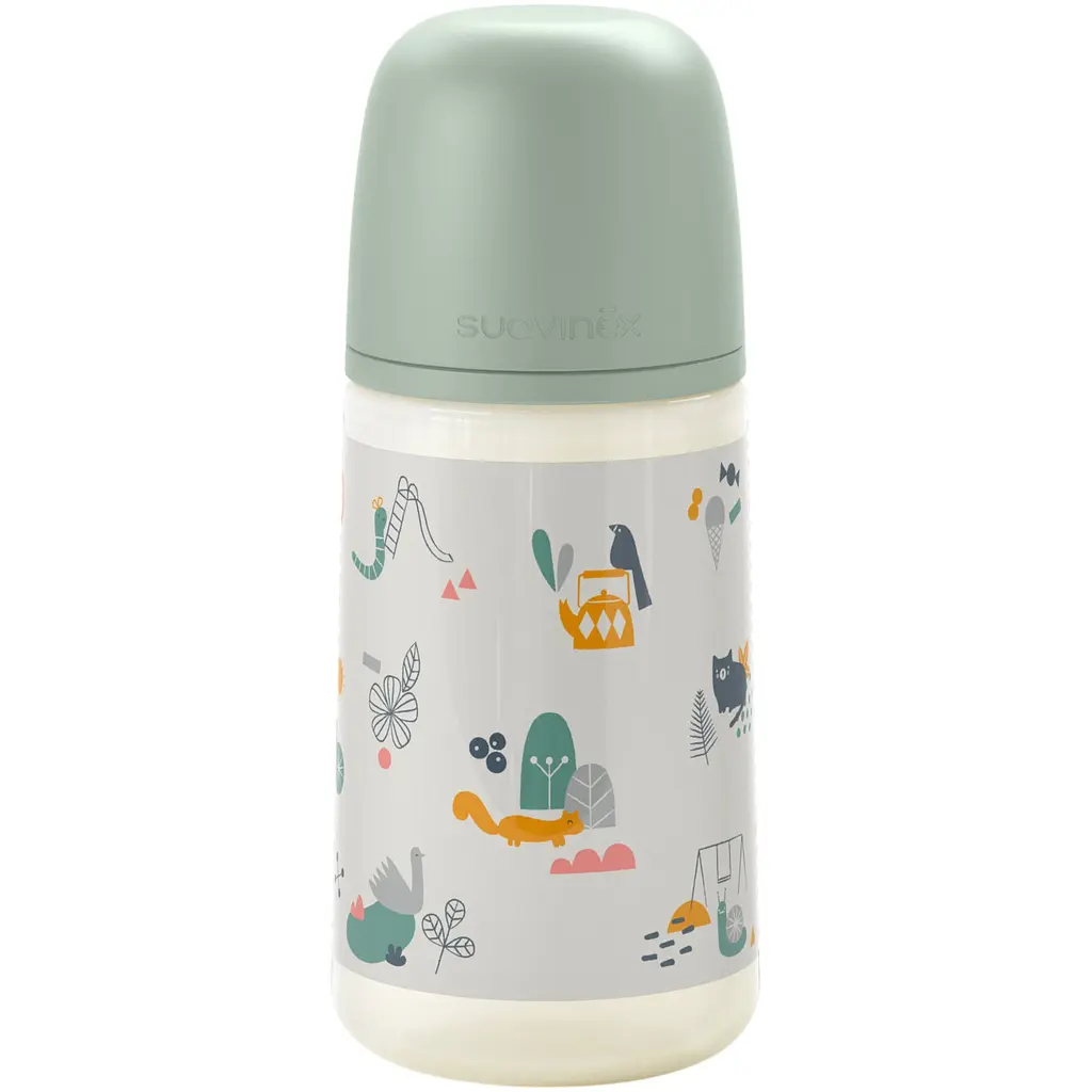 Объем 270 мл, гигиеническая крышка, подходит от 3 месяцев, соска с медленным потоком (S), физиологическая соска, изготовлена из ультрамягкого силикона, антиколиковый клапан, эргономичная форма для удобного держания, без BPA.