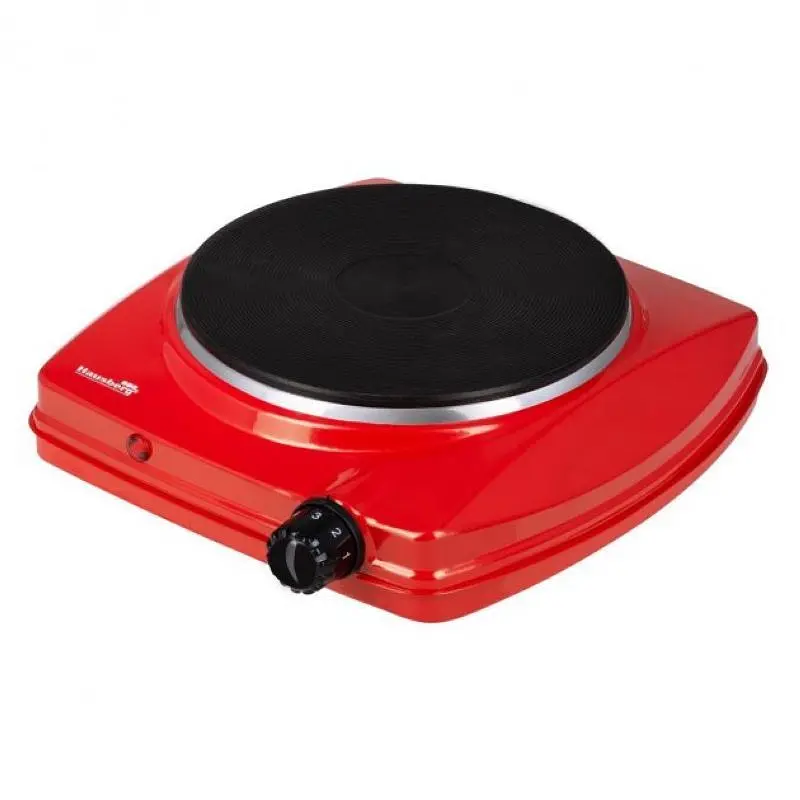 Компактная настольная электроплита Hausberg HB-519 – настоящее спасение на даче или в маленькой квартире без подведенного газа. Аккуратный красный корпус плитки покрыт эмалью, которая легко очищается от грязи. Размеры плиты составляют 27х27х9 см Плита оснащена одной конфоркой с чугунным нагревательным элементом. Мощность конфорки 1500 Вт. Чугунный блин равномерно прогревается, хорошо держит необходимую температуру, да и расход электроэнергии у такой плиты минимальный. Нагревательный элемент данной модели толще, чем у аналогов. Это хоть и несколько увеличивает время нагрева, но позволяет плите лучше держать температуру, что положительно сказывается на процессе приготовления, так и на экономии электроэнергии.