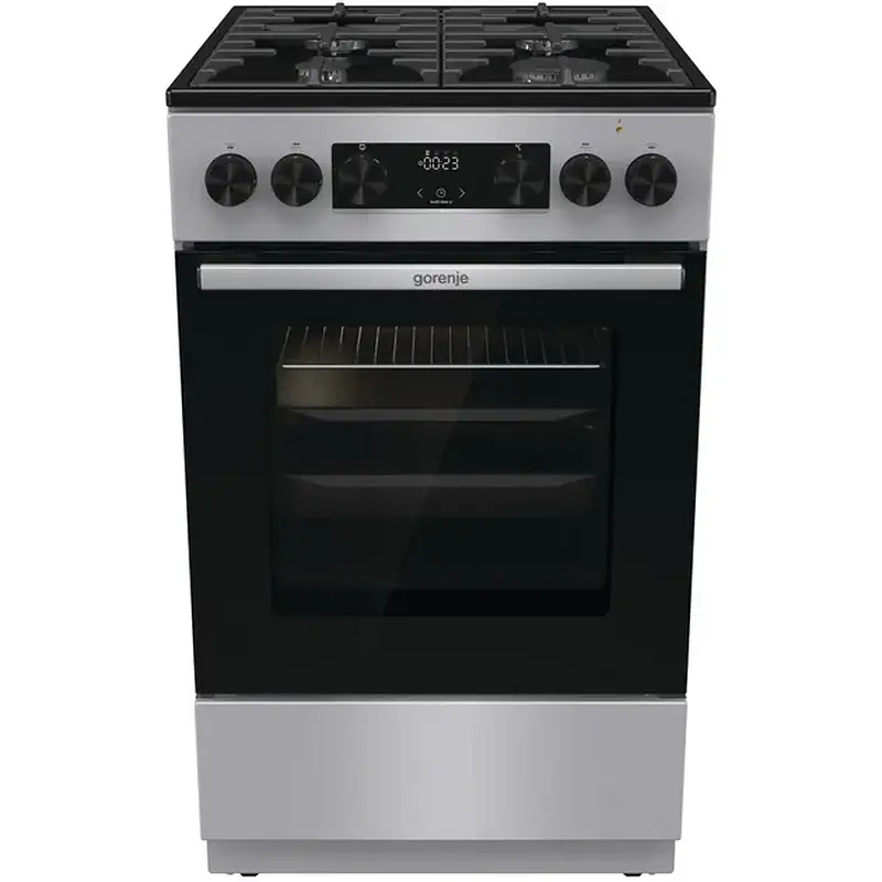 GK5C42SF от Gorenje — комбинированная плита с газовыми конфорками и электрической духовкой. Стильный серый цвет, размеры 50 х 59,4 см, объем духовки 70 л. Электрическая очистка паром для легкого ухода. Уникальная форма Homemade для удобства. Газовая поверхность: чугунные решетки, 4 конфорки: левая передняя 1 кВт, правая передняя 3 кВт, левая задняя 1,9 кВт, правая задняя 1,9 кВт. Газ-контроль для безопасности.