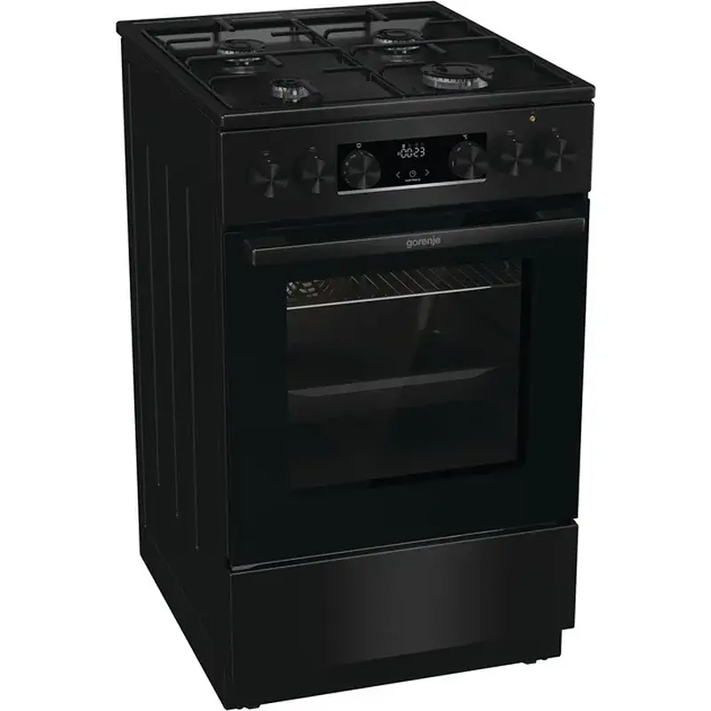 Комбинированная кухонная плита GKS5C70BJ Характерная закругленная форма - одно из основных преимуществ духовых шкафов Gorenje. Созданный по подобию традиционной дровяной печи, такой духовой шкаф обеспечивает свободную циркуляцию горячего воздуха. Блюдо прогревается равномерно и со всех сторон, благодаря чему получается идеальным: хрустящим снаружи и сочным внутри. В моделях высшего класса такую форму дополняет система вентиляции MultiFlow 360, позволяющая выпекать на всех 5 уровнях. Материал дверцы - стекло, а материал панели управления - окрашенная сталь. Полезный объем плиты составляет 70 л, а полезный объем составляет 1,260 см³.