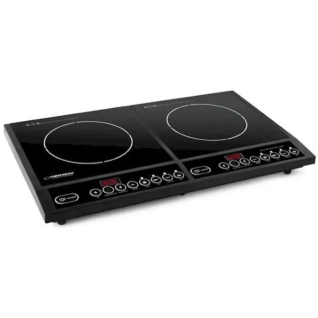 Настольная индукционная плита EKH008 от компании Esperanza оснащена двумя конфорками мощностью 2000 Вт и управляется сенсорными датчиками.