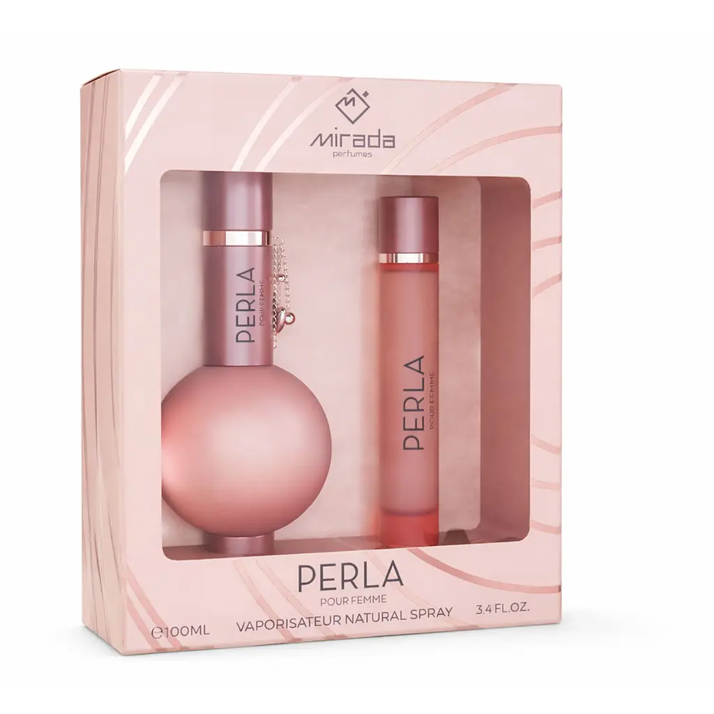 Элегантный подарочный набор Mirada Perla — это воплощение нежности и утончённой женственности: аромат раскрывается свежими нотами яблока и ягод, плавно переходит в изысканное цветочное сердце с лилией, орхидеей, жасмином и зелёными акцентами, а в базе оставляет мягкий, притягательный шлейф карамели и мускуса; формат 100+20 мл делает его идеальным как для повседневного использования, так и для путешествий, превращая этот набор в стильный и желанный подарок.