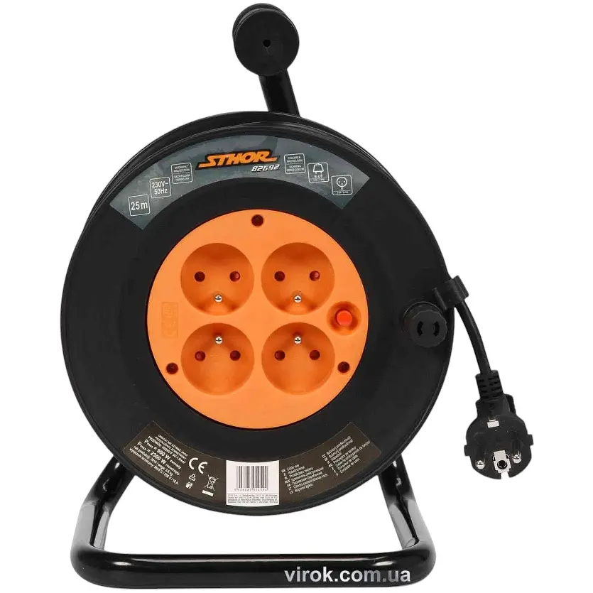 Удлинитель сетевой Sthor на катушке с 4 розетками и заземлением позволяет подключать несколько устройств одновременно. Благодаря заглушкам, защищающим от пыли и брызг, может использоваться как внутри помещений, так и вне их, например на строительных площадках, в саду, на производственных предприятиях.