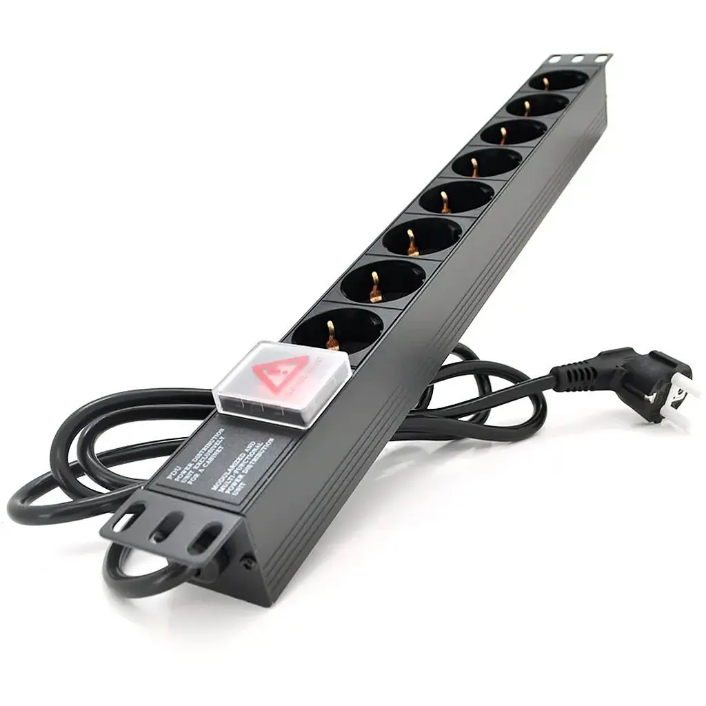 Удлинитель PiPo на 8 розеток с выключателем – идеальный поставщик электроэнергии для серверного оборудования, удобно располагающийся в серверном шкафу или стойке, за счет специальных монтажных проушин крепления. При необходимости может использоваться как обычный удлинитель. Особенности: • Кнопка включения/выключения • Корпус выполнен из прочного алюминия. проводов 3х1,5 мм кв.• Материал корпуса – алюминий• Цвет черный