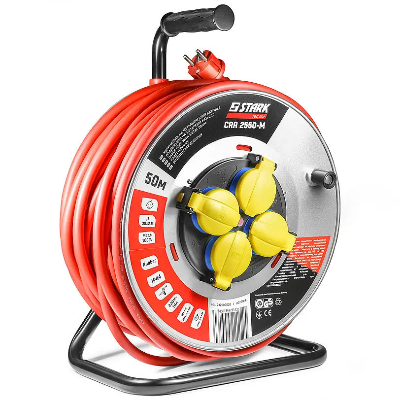 Stark CRR-2550-M - удлинитель на металлической катушке для подключения к сети электроинструментов, садовой техники.