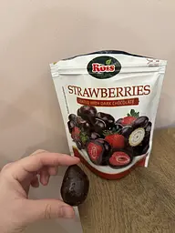 Це просто маленька залежність у пакетику! 🍓🍫 Полуниця в темному шоколаді виявилась набагато смачнішою, ніж очікувала — ягода всередині м’яка, ароматна, не пересушена, а шоколад якісний, з насиченим смаком. Комбінація виходить ідеальна: трохи кислинки, трохи гірчинки, і все це в дуже делікатній солодкості.