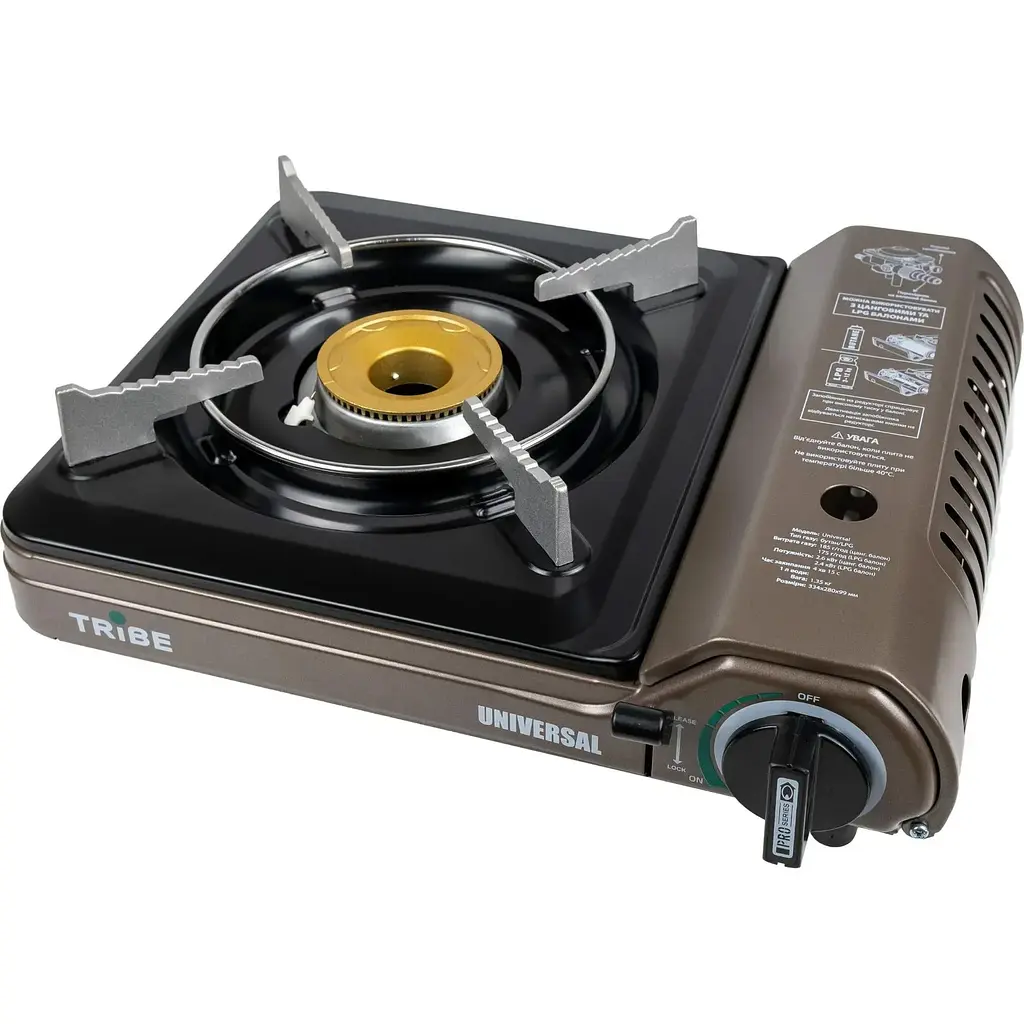 Портативная газовая плита Tribe Universal создана для тех, кто ценит комфорт и автономность. Ее универсальность заключается в возможности работы как от стандартного цангового газового картриджа на 220 г, так и от бытового пропанового баллона (LPG). Такая гибкость делает ее идеальной для кемпинга, путешествий, рыбалки, охоты и использования в качестве резервной плиты на даче или дома при отключении электричества. Мощность 2.6 кВт при работе от картриджа и 2.4 кВт при подключении к LPG обеспечивает стабильное пламя и равномерный нагрев, позволяя готовить блюда быстро и эффективно.