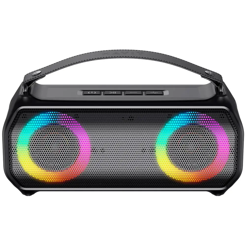 Портативная Bluetooth колонка HAVIT HV-SK888BT подойдет для ценителей хорошей акустики по приятной цене. Стильный дизайн, небольшие размеры и водонепроницаемость IPX5 блютуз колонки выделят вас среди других. Колонка изготовлена из ABS пластика, а динамики защищены металлической сеткой. Сверху удобная ручка, благодаря которой удобно будет носить ее с собой. Об этом свидетельствуют и небольшие ее размеры. Портативную Bluetooth колонку вы сможете подключить к любому устройству, а также прослушивать музыку с microSD карты, USB накопителя и с помощью AUX-входа. В колонке встроен мощный аккумулятор с емкостью 1800mAh, позволяющий прослушивать музыку до 8 часов. Колонка имеет 4 кнопки, благодаря которым вы сможете легко ею управлять. В колонке 2 динамика мощностью по 5W.