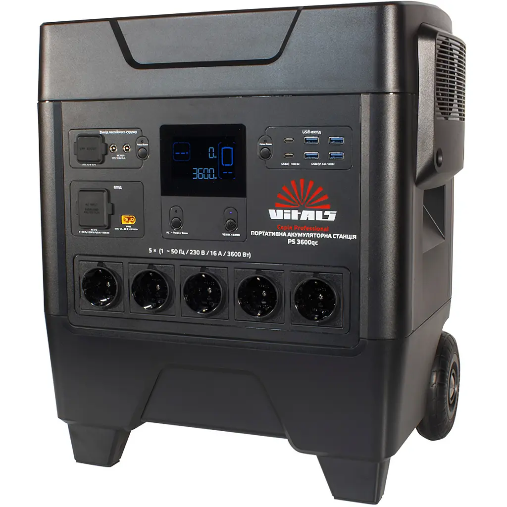 Портативная аккумуляторная станция Vitals Professional PS 3600qc (217493) – это идеальное решение для тех, кто нуждается в надежном источнике энергии в любых условиях. Она имеет встроенный аккумулятор большой емкости, который можно зарядить от солнечной панели, автомобильного прикуривателя или обычной розетки. На станции PS 3600qc предусмотрены выходы различных типов, что обеспечивает возможность питания и зарядки 99 % бытовых приборов средней мощности.