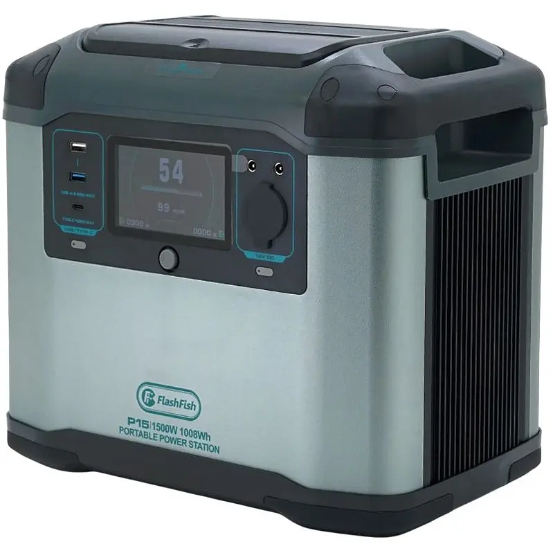 Портативный источник питания P15 FlashFish, с правильной синусоидой способен долго обеспечивать энергонезависимость, благодаря емкости 1008Вт*ч(280000mAh), подключая любые электроприборы мощностью 1500Вт(пиковая 2500Вт), весом всего 12 кг и размером 12 кг. Это устройство может работать «как Э-UPS», при условии использования внешних приборов, подключенных непосредственно к портативному источнику питания или с помощью удлинителя, время переключения 0-3 сек. Однако в этом режиме устройство не следует нагружать более чем на 1500 Вт!Также, нельзя использовать устройства «как E-UPS» с сетевыми фильтрами, которые комплектуются газоразрядными лампами включения и выключения сетевого фильтра! Кнопки управления: Для экономии энергии портативной станции все режимы работы включаются и отключаются отдельно нажатием соответствующих кнопок управления.- Питание On/Off - нажмите и удерживайте 5 секунд для включения и выключения устройства. - Питание AC - коротко нажмите для включения и выключения переменного тока. - Питание DC - коротко нажмите для включения и выключения постоянного тока.- На LCD дисплее отображается процент заряда батареи, а также информация о подключаемых устройствах.