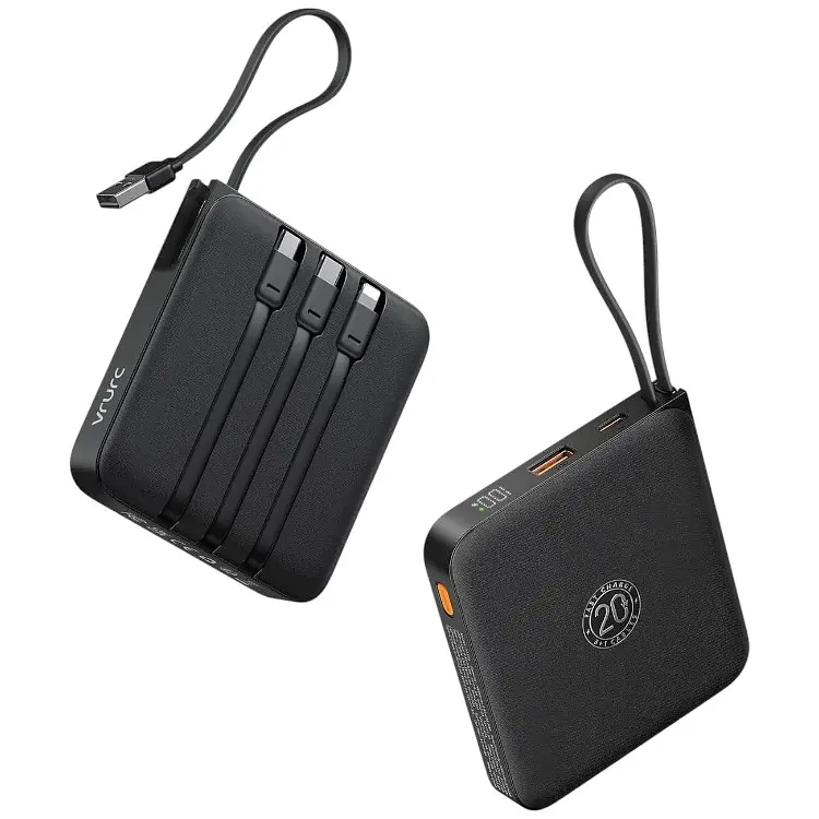 4 встроенных кабеля: тонкое портативное зарядное устройство имеет 3 выходных кабеля и 1 кабель быстрого входа зарядки, что позволяет заряжать различные устройства, включая iPhone (15/14/13/12 серии и т. д.), телефоны Samsung и другие телефоны Android с портом USB C, а также микроустройства.