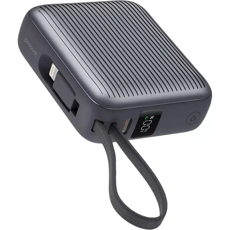 Proove Moon Rock - для тех, кто ценит скорость и качество! Дизайн Современный, минималистичный и удобный в использовании. Proove Moon Rock легко помещается в рюкзаке или кармане и имеет прочный корпус, который не боится ежедневных нагрузок. Стильный вид гармонично сочетается с практичностью. Мощность этой портативной батареи хватит, чтобы оставаться на связи в течение всего дня. Она быстро заряжает смартфоны, особенно когда времени мало. Надежность и стабильность - главное, чего хочется от павербанка, и здесь это все есть. Удобство Два универсальных порта позволяют заряжать разные устройства одновременно. Больше не нужно искать отдельные кабели - все, что нужно, уже есть в одном устройстве. Материал: Поликарбонат + ABS-пластик Тип батареи: Литий-полимерная Емкость аккумулятора: 10000 мАч 3,85 В 38,5 Вт·ч Мощность: Вход: Type-C Input: 5 В/3 А, 9 В/2 А, 12 В/1,5 А (18 Вт) Мощность: Выход USB Type-C: 5 В/3 А, 9 В/2,22 А, 10 В/2,25 А, 12 В/1,67 А (22,5 Вт) Мощность: Выход кабель USB Type-C: 5 В/3 А, 9 В/2,22 А, 10 В/2,25 А, 12 В/1,67 А (22,5 Вт) Мощность: Выход кабель Lightning: 5V/2.4А (12W) Размеры: 72x62x25 мм Вес: 173.6 г Цвет: серый Комплектация: УМБ 10000mAh