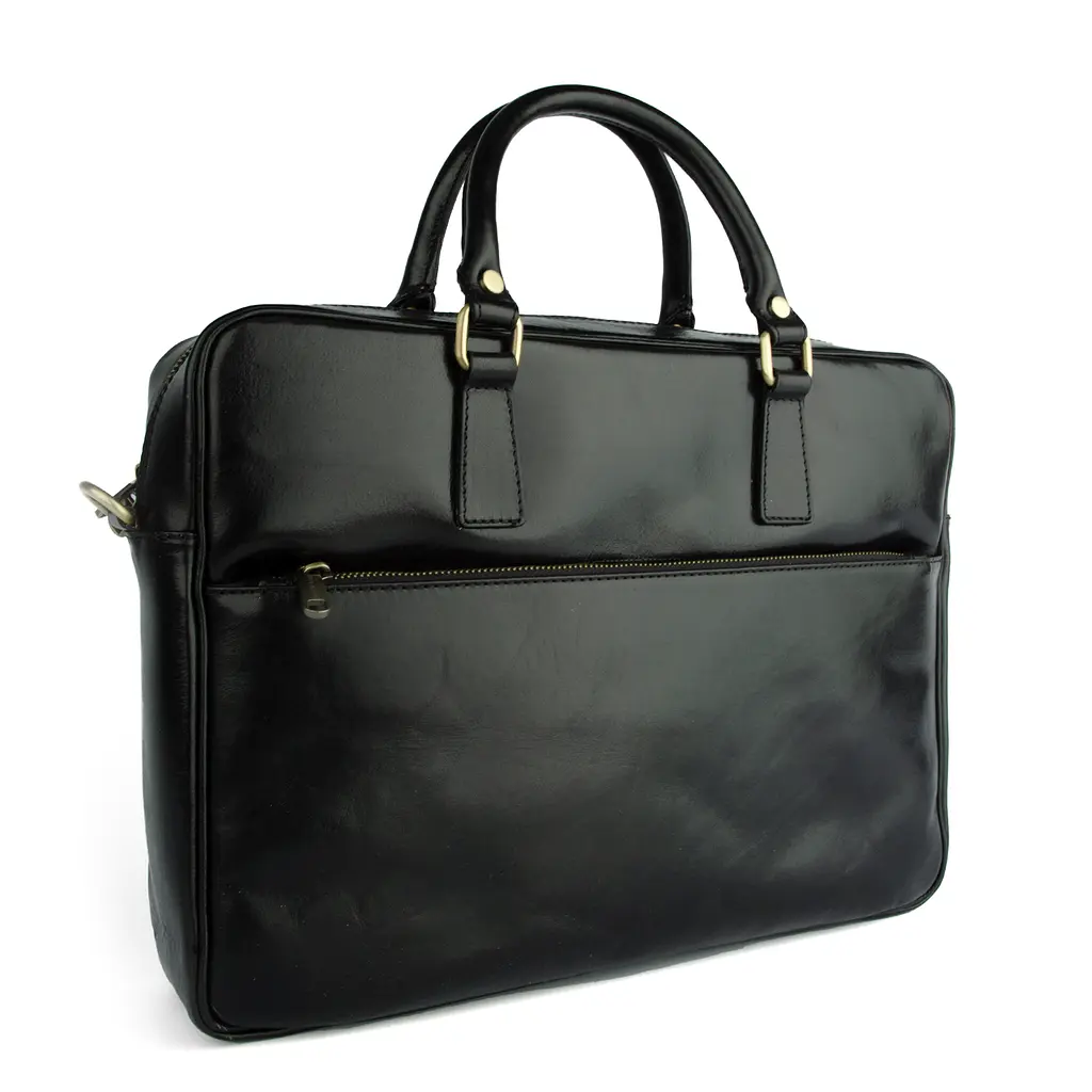 Эта стильная и функциональная сумка-портфель идеально сочетает классический дизайн и современную практичность, делая ее отличным выбором для деловых людей. Изготовленная из натуральной кожи, она обладает приятной на ощупь текстурой. Портфель имеет лаконичную, прямоугольную форму с немного закругленными углами, что одновременно придает элегантность и строгость. Фурнитура металлическая цвета античной латуни. Две прочные кожаные ручки на металлических кольцах обеспечивают удобство в переноске, а основное отделение закрывается на надежную металлическую молнию с двумя бегунками. Спереди расположен большой карман на молнии, идеально подходящие для хранения аксессуаров или документов, к которым нужен быстрый доступ.