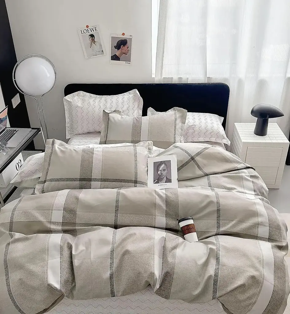 До конца акции 7 днейПостельное белье Евро размер "Dima" Натуральный комплект с компаньоном Турция Европейка Наволочки 70х70см Клетка Коттон - для Вашего уюта и комфорта