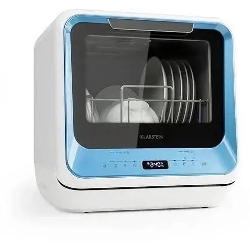 Мини-посудомоечная машина Klarstein Amazonia является идеальным средством для мытья посуды для отдельной кухни, квартиры, для отдыха или кемпинга! В него можно разместить до двух комплектов посуды, и он мгновенно снова сверкает чистотой до следующего приема пищи. Вы можете легко и удобно выбирать между 6 эффективными программами стирки с помощью светодиодного дисплея.