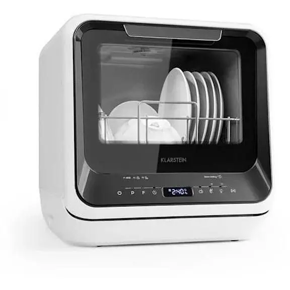Мини-посудомоечная машина Klarstein Amazonia является идеальным средством для мытья посуды для отдельной кухни, квартиры для отдыха или кемпинга! В него можно разместить до двух комплектов посуды, и он мгновенно снова сверкает чистотой до следующего приема пищи. Вы можете легко и удобно выбирать между 6 эффективными программами стирки с помощью светодиодного дисплея.