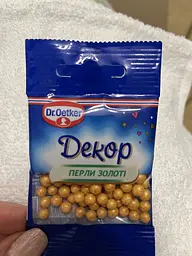 Посыпка Dr.Oetker Декор Жемчуг золотой - отличный вариант для украшения, который придаст красивый и элегантный вид вашим десертам и кондитерским изделиям. Посыпка имеет форму блестящих шариков, которые напоминают жемчуг. Посыпка Жемчуг придает десертам эффектный вид. Она добавляет блеск, делая ваши кондитерские изделия более привлекательными и аппетитными.
