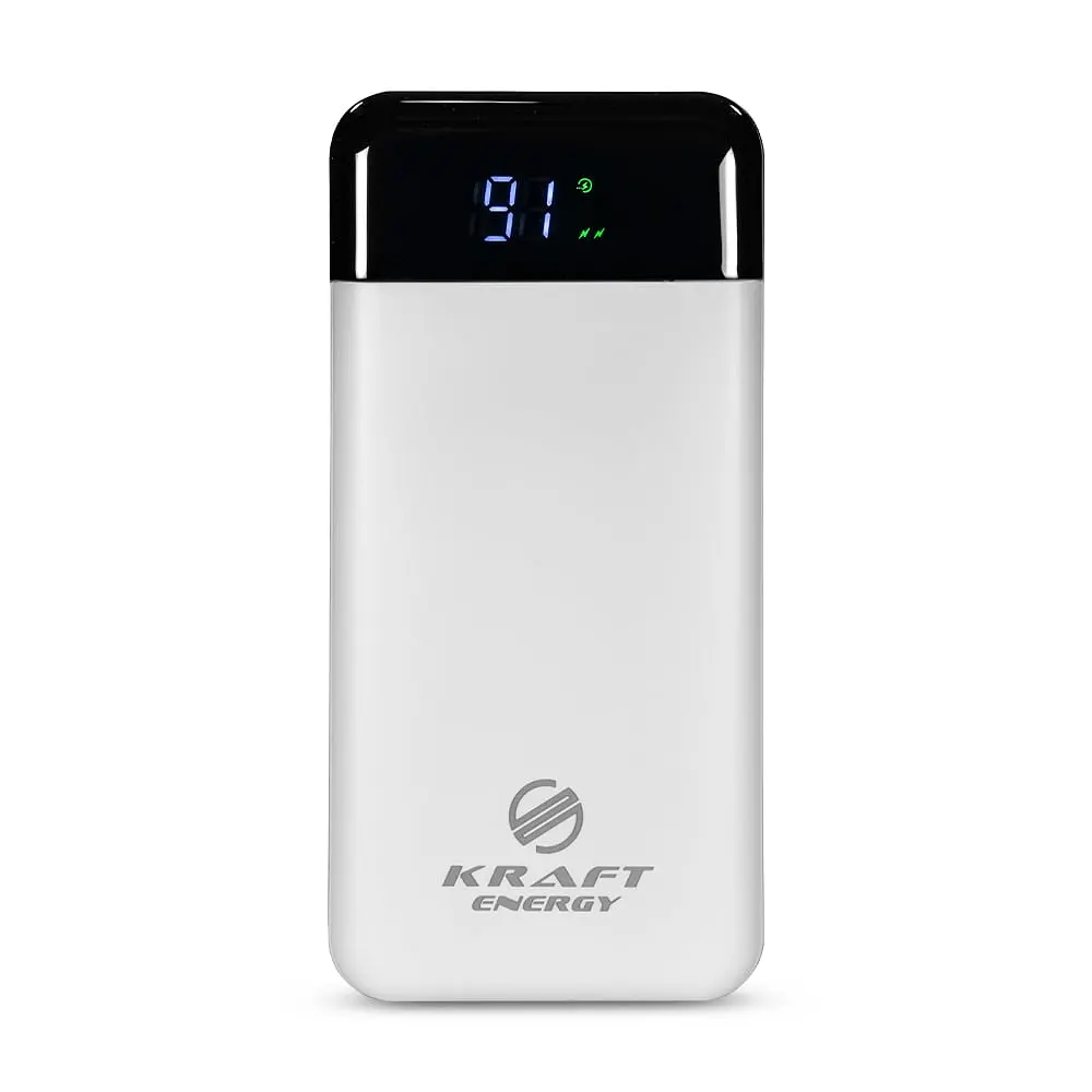 Емкость батареи составляет 20000 мАч, тип – литий-полимерная.