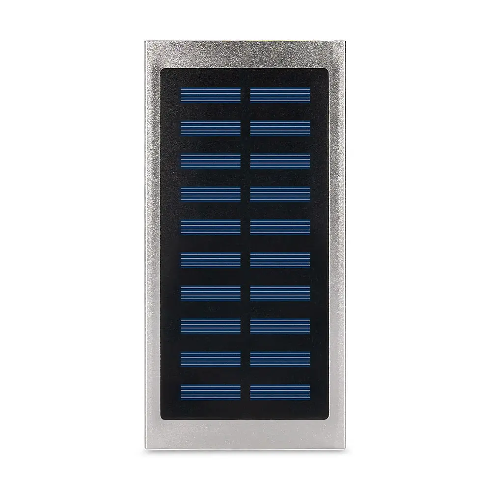 Емкость батареи составляет 20000 мАч, тип – литий-полимерная. Солнечная панель 5 В/200 мА.