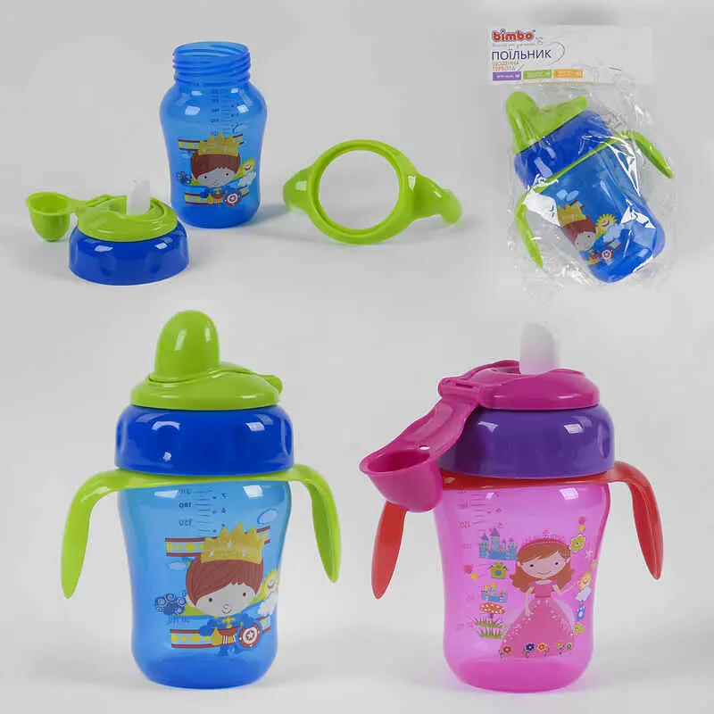 Поильник от TM Bimbo изготовлен из высококачественного и безопасного материала полипропилен, он полностью отвечает основным санитарным нормам и тщательно проходит контроль качества.Поильник помогает Вашему ребенку комфортно и безопасно перейти с бутылочки на стаканчик в процессе повседневного кормления.Небольшие массажные ручки, по бокам, помогут малышу удобно держать поильник в ручках. Уход:- тщательно вымойте бутылочку перед первым использованием, промойте ее под горячей водой с моющими средствами;- температура жидкости внутри бутылочки не должна превышать 40°C. Объём бутылочки - 210 мл.Модель представлена в 2х цветах: синий и розовый.Размер поильника: 12 х 6 х 15 смРазмер упаковки: 12 х 6 х 20 см