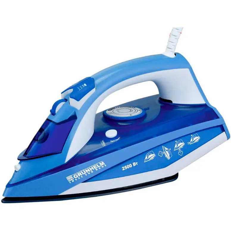 Утюг паровой Grunhelm EI8890C 2500 Вт отпариватель для глажки одежды с керамическим покрытием подошвы Синий