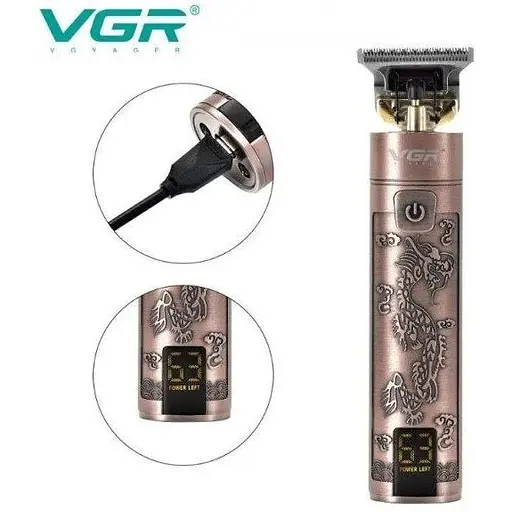 Тример для бороды, для волос, для стрижки электрический, аккумуляторный с дисплеем VGR V-076 5W Gold для профессионального стрижения волос, бороды, окантовки и Hair Tattoo. с кожей и не повредит ее. Идеальный подарок парню, мужу и отцу.