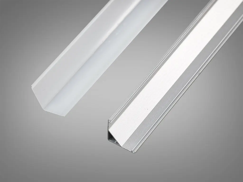 Алюминиевый накладной угловой профиль для светодиодной ленты с матовым рассеивателем. Угловой профиль с монтажом под 45° предназначен для направленного бокового освещения в интерьере. Корпус изготовлен из анодированного алюминия — прочного, легкого и устойчивого к коррозии материала, способного эффективно рассеивать тепло.