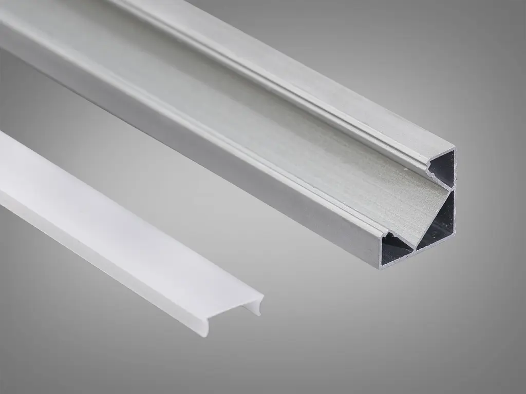 Алюминиевый накладной угловой профиль с двойным световым каналом для светодиодной ленты. Представляем профиль, способный одновременно осветить два направления — благодаря своей уникальной треугольной геометрии. Конструкция из анодированного алюминия обеспечивает эффективный теплоотвод и придаёт профилю современный техностиль.
