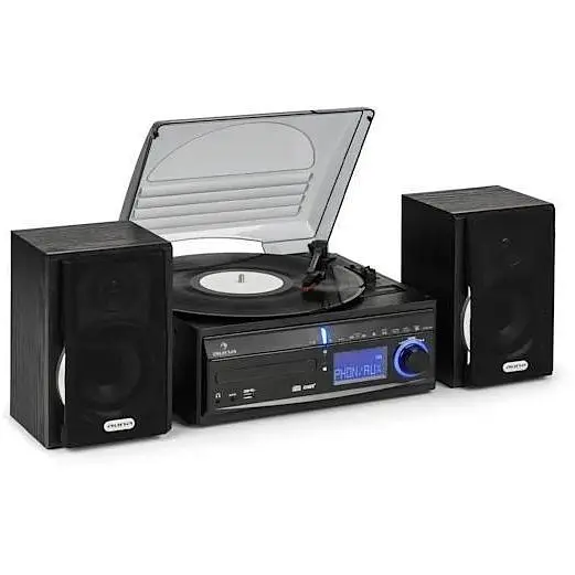 От стереосистемы auna DS-2 стены дрожат, оживляя звук старых виниловых дисков и новых серебряных изделий.