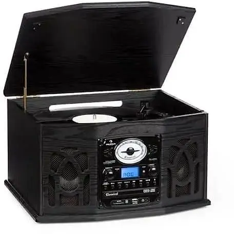 Символическим центром устройства является проигрыватель, спрятанный под зернистой деревянной крышкой, которая вместе с установленной сбоку кассетной декой и CD-плеером с поддержкой MP3 охватывает все ведущие музыкальные носители с начала 20 века. Винил держит стереосистему auna в ежедневной ротации так же, как и кассеты и CD-носители.