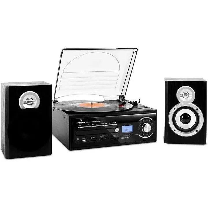 Auna TT-190 - многофункциональная стереосистема, являющаяся посредником между старыми и новыми медиа. В отличие от большинства современных компактных устройств, компактная система включает в себя кассетный магнитофон и проигрыватель грампластинок. Уникальность устройства: Через порт USB и SD на передней панели можно не только воспроизводить файлы MP3, но и конвертировать ценные кассеты и записи в формат MP3 без использования компьютера и сохранять их на носители USB и SD. Идеально подходит для сохранения старых записей на будущее. Высококачественный ременный привод проигрывателя обеспечивает хорошее качество записи. Auna TT-190 также имеет радиоприемник и проигрыватель компакт-дисков MP3, с которых можно делать записи в формате MP3. Линейный выход создает соединение с внешним усилителем Hi-Fi для улучшения звука, если это необходимо Компактная стереосистема с проигрывателем, CD-плеером, кассетной декой, радиоприемником и входами USB/SD