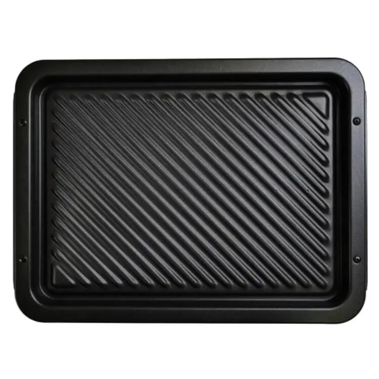 Рифленая поверхность обеспечивает циркуляцию воздуха под продуктом, предотвращая его прилипание и создавая эффект "гриля" - лишний жир стекает в желобки, а блюдо получает аппетитную корочку. Специальное высокотемпературное покрытие обеспечивает легкую очистку и долговечность использования.