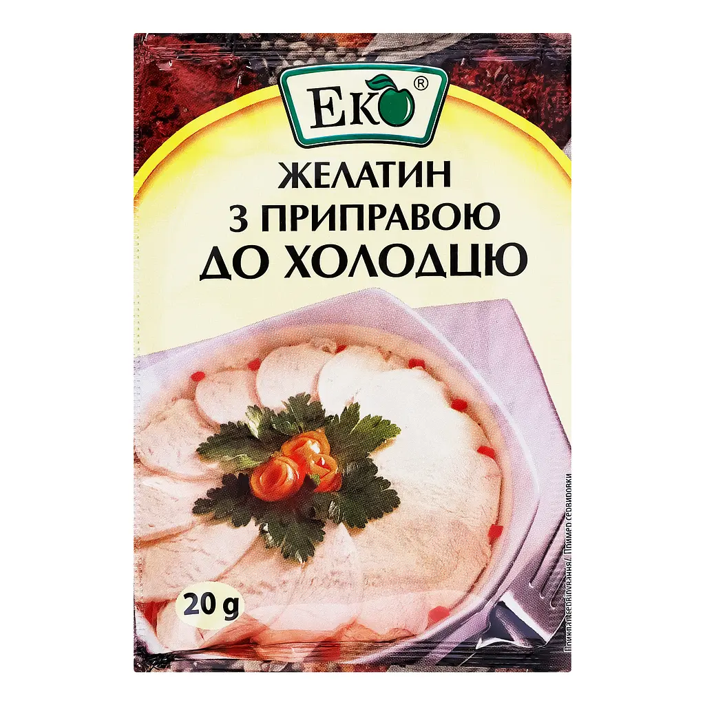 Приправа Эко желатин для холодца разработана специально для приготовления холодца. Она содержит быстрорастворимый желатин в расчете на приготовление 3 л блюда. Особый набор пряностей придает этой приправе особый вкус и аромат, которые помогут блюду стать настоящим кулинарным шедевром.