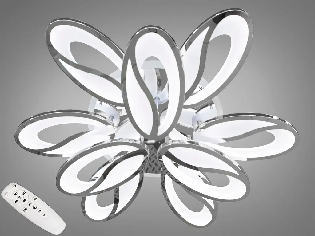 Новая потолочная LED люстра плоская потолочная с подсветкой и димером - это высокотехнологичный и стильный элемент интерьера. Основа изготовлена из металла, что придает ей прочность и устойчивость, а также позволяет создать современный вид. Основа также имеет возможность подсветки, что добавляет дополнительный атмосферный эффект. Для партнеров, заинтересованных в приобретении светодиодных люстр оптом (большими партиями), украинская компания "Диаша" предлагает широкий ассортимент светильников и люстр, которые отличаются своим совершенством и конкурентоспособными ценами. Приверженность бренда качеству и дизайну делает каждый светильник или светодиодную люстру выгодным инвестиционным вложением. Основная часть люстры состоит из светодиодных лепестков, расположенных вокруг центральной оси. Эти светодиодные лепестки изготовлены из матового акрила, чтобы создавать различные световые эффекты. Цвет LED-лепестков настраивается с помощью димера, что позволяет изменять интенсивность света от слабого до яркого, создавая разнообразные атмосферы в помещении. Целебная гармония мягких овалов и смелого цвета хрома этой люстры делает ее отличным выбором для тех, кто желает купить люстры оптом от украинского производителя "Диаша". Акриловые рассеиватели создают равномерный свет, который идеально подходит для любого пространства, от современных офисов до роскошных гостевых комнат. Такая люстра идеально подойдет к стилям интерьера, где ценится современность и изысканность. Она станет прекрасным дополнением к гостиной, где ее мягкий свет создаст уютную атмосферу для семейных встреч. Покупая эту люстру на кухню в Украине дешево от производителя, вы не только обеспечиваете функциональное освещение, но и добавляете стиля вашему жизненному пространству. Люстра лофт в спальню будет воплощением роскоши, сочетающейся с простотой, или станет эпицентром люстры в гостиную, где каждый вечер можно проводить под уютным светом. Она реализует инновации на украинском рынке, демонстрируя, что «Диаша» не только следует традициям высокого качества материалов, но и является новатором в сфере осветительного дизайна. Универсальность дизайна позволяет интегрировать эту лед люстру в широкий спектр интерьеров. Она станет не только источником света, но и художественным акцентом в пространстве. Плавная регулировка яркости и цветовой температуры с помощью пульта и диммера обеспечивают комфорт и функциональность, отвечая разнообразным сценариям использования. Нужно ли Вам освещение для чтения или тусклый свет для романтического ужина, эта светодиодная люстра способна создать нужную атмосферу. Исключительный дизайн этой модели, включающий в себя несколько овалов-лепестков, позволяет каждому создать собственную уникальную композицию света в пространстве, что делает каждую люстру особенной. Ловкость в монтаже и легкость в обслуживании гарантируют, что люстра всегда будет выглядеть привлекательно и современно. "Диаша", будучи новатором и хранителем традиций, предлагает люстру, которая сочетает в себе эстетику и технологическую новизну, открывая новые горизонты в дизайне освещения. Хромированная потолочная LED люстра в виде цветка с диммером и LED подсветкой для спальни/кабинета/гостиной, мощностью 115W, люстры цветы, люстра плоская потолочная.