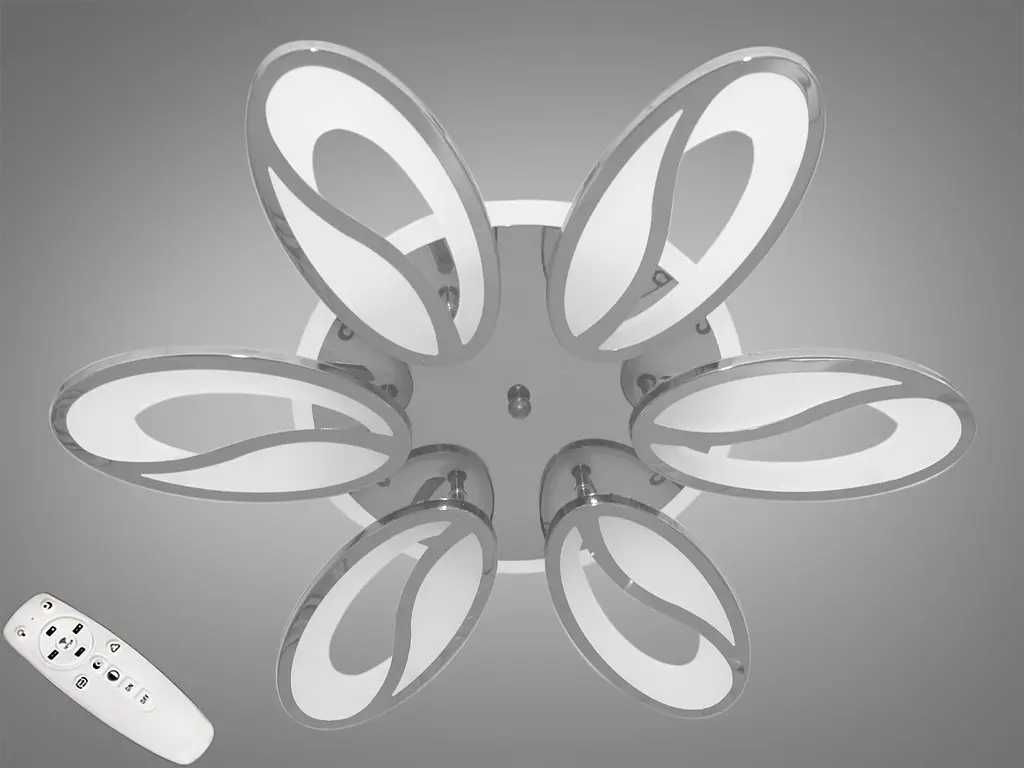 Потолочная LED плоская люстра с пультом, подсветкой основания и димером – это высокотехнологичный и стильный элемент интерьера. Основание изготовлено из металла, что придает ему прочность и устойчивость, а также позволяет создать современный вид. Основание также имеет возможность подсветки, что добавляет дополнительный атмосферный эффект. Основная часть потолочной люстры состоит из LED-лепестков, расположенных вокруг центральной оси. Эти LED лепестки-плафоны изготовлены из матового акрила, чтобы создавать различные эффекты света. Цвет LED-лепестков настраивается с помощью димера, что позволяет изменять интенсивность света от слабого до яркого, создавая разнообразные атмосферы в помещении. Акриловые рассеиватели равномерно распределяют свет по помещению. Вы можете смотреть на включенную потолочную люстру и не бояться поймать «зайчиков».Эффект мягкого света очень важен в помещениях, где часто находятся дети! Еще одним неоспоримым преимуществом этой светодиодной люстры для детской комнаты являются световые элементы, интересные для взгляда ребенка. Подсветка основания может быть разного цвета, чтобы создать уникальные эффекты освещения. Эта функция позволяет подчеркнуть дизайн и создать интересный вид. Функция димера позволяет пользователю легко регулировать яркость света в соответствии со своими потребностями и настроением. Это особенно полезно для создания различных сценариев освещения, от вечернего релакса до яркого света для работы или чтения. С пульта также можно включать один из установленных режимов освещения - теплый свет, холодный свет, нейтральный;включить синюю подсветку или режим «ночник» (люстра будет включена всего на 5% мощности LED-люстры), уменьшить или увеличить яркость на 50%, а если все это покажется мало - плавно отрегулировать уровень яркости и цветовую температуру. С выключателя люстра переключается как и любая другая светодиодная люстра. Каждое включение-выключение поочередно переводит люстру в следующие режимы: подсветка, холодный свет, теплый свет, нейтральный свет.К привычной диодной подсветке синего цвета добавились нижние оттенки розового и страстные отблески красного. Такая потолочная LED люстра не только функциональна, но и станет стильным акцентом в современном интерьере, сочетая в себе эффективность LED-технологий и элегантный дизайн. Перед вами совершенно новое и необычное исполнение плафонов, обрамляющих LED лампы. Такая люстра запросто подойдет под любой дизайнерский стиль интерьера: Современный стиль. В современном интерьере, где ценятся чистые линии и минималистичный дизайн, потолочная светодиодная люстра добавит элегантности и подчеркнет современный акцент помещения. Ее можно установить в гостиной или спальне, где она создаст стильный фокус и станет важной деталью интерьера. Лофт. В стиле лофт, где сочетаются индустриальные элементы и необработанные поверхности, потолочная светодиодная люстра будет идеальным дополнением. Ее современный дизайн может сохранить эстетику лофта, добавив при этом приятное и функциональное освещение. Скандинавский стиль. В интерьерах в стиле скандинавского дизайна, где царит натуральность и светлая цветовая палитра, эта потолочная люстра может смотреться великолепно. Ее прозрачные LED-лепестки и подсветка могут добавить атмосферы тепла и у