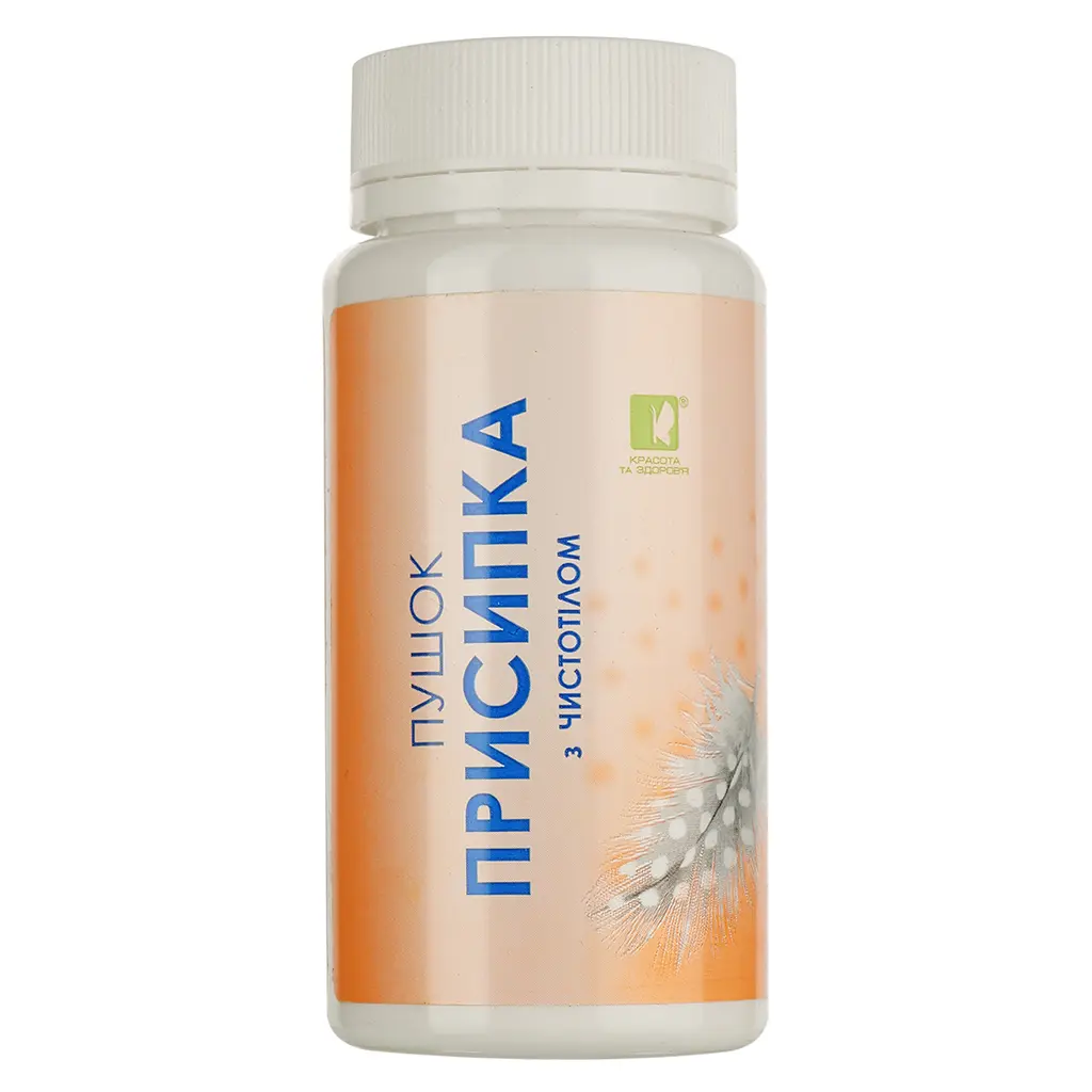 Детская присыпка Красота та Здоров'я Пушок Пантенол с чистотелом специально разработана для ухода за нежной кожей малыша. Обладает высокой гигроскопичностью, адсорбирует выделения потовых и сальных желез, уменьшает трение кожных складок, защищает нежную кожу ребенка от неблагоприятного внешнего воздействия.