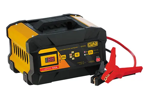 Пуско-зарядное устройство СИЛА предназначено для зарядки и запуска автомобильных аккумуляторов. Поддерживает работу с АКБ емкостью от 4 до 300 А/ч, имеет цифровой дисплей, индикатор заряда и защиту от короткого замыкания. Подходит для легковых автомобилей, мотоциклов и другой техники.