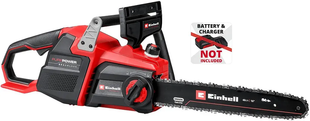 Аккумуляторная цепная пила Einhell Professional GP-LC 36/40 Li BL – Solo – надежный помощник для валки средних и больших деревьев. Он оснащен бесщеточным двигателем Einhell для увеличения мощности и продолжительной работы. Пила имеет длину реза 38 см и оснащена высококачественной цепью OREGON толщиной 1,3 мм, 56 приводными звеньями и шагом 3/8 дюйма. Пыльная цепь непрерывно и автоматически смазывается из масляного бака объемом 230 мл. Для оптимальной защиты аккумулятора можно надежно закрепить сбоку устройства. В комплект поставки не входит аккумулятор и зарядное устройство.