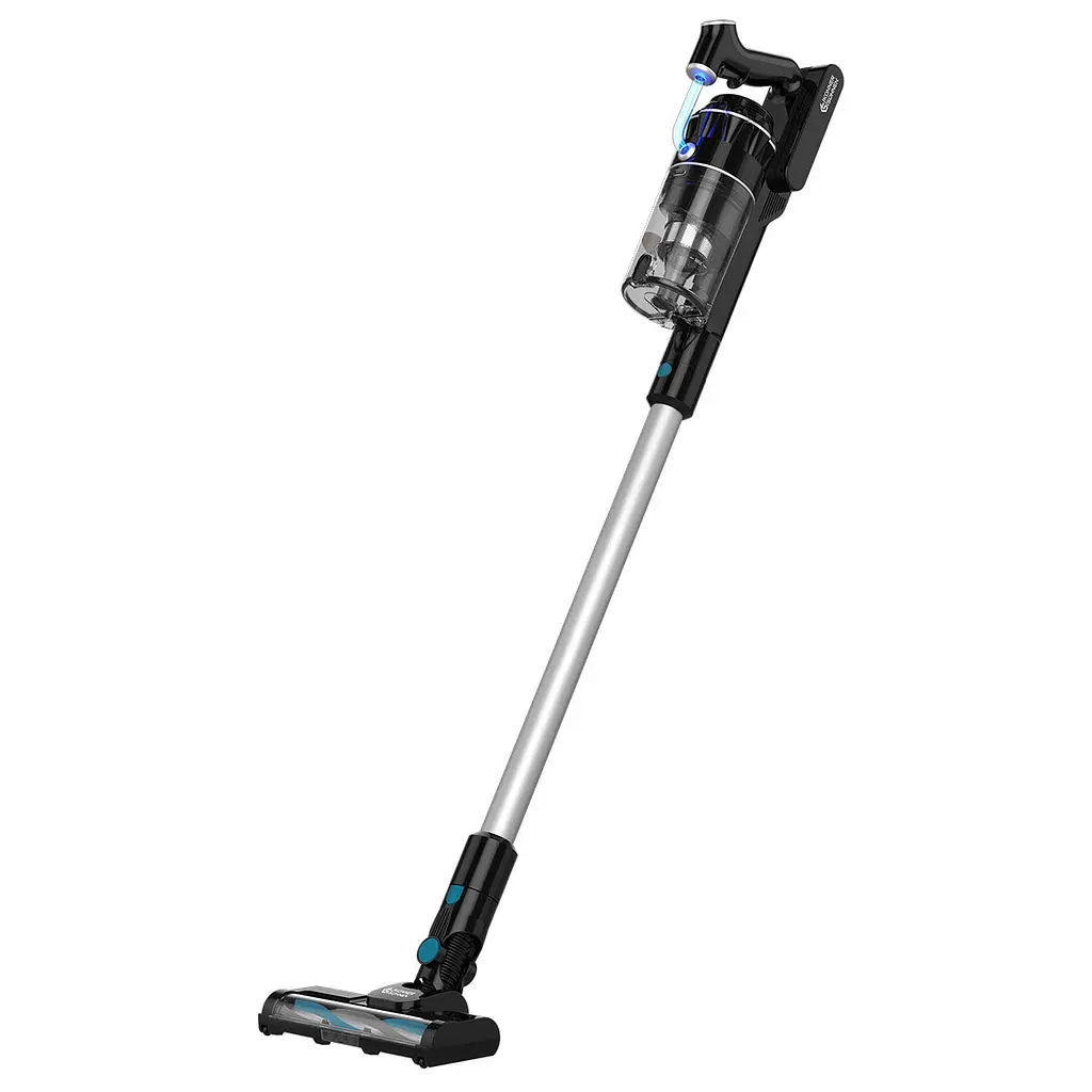 Пылесос оснащен литий-ионной батареей емкостью 2200 мА·ч, что обеспечивает до 45 минут работы в режиме ECO, а удлиняющий патрубок превращает его в ручное или вертикальное устройство для расширения сферы использования. Зарядка производится от 100–240 В (50–60 Гц, 0.4 А макс) со временем 4.5–5 часов. Двухступенчатая мультициклонная система фильтрации (металлический фильтр из нержавеющей стали + Multi Cyclone) задерживает даже самые мелкие частицы, сохраняя мощность всасывания при переполненном контейнере, а фильтры легко моются водой. Электрощетка с вращением эффективно очищает ковры, жесткие покрытия, текстиль и другие поверхности. Три режима работы: ECO (7000 Па/45 мин для пыли и волос), STANDARD (15000 Па/25 мин для крошек и песка) и HIGH (25000 Па/12 мин для ковров с высоким ворсом). Съемный прозрачный пылесборник объемом 450 мл позволяет контролировать заполненность без перерыва, замечая большие предметы. Встроенная лампа на щетке подсвечивает зону уборки, а многоуровневая защита (от перегрева, перегрузки, переполнения, короткого замыкания и т.п.) гарантирует безопасность. Номинальная мощность – 300 Вт, безмешковая система способствует экологичности.