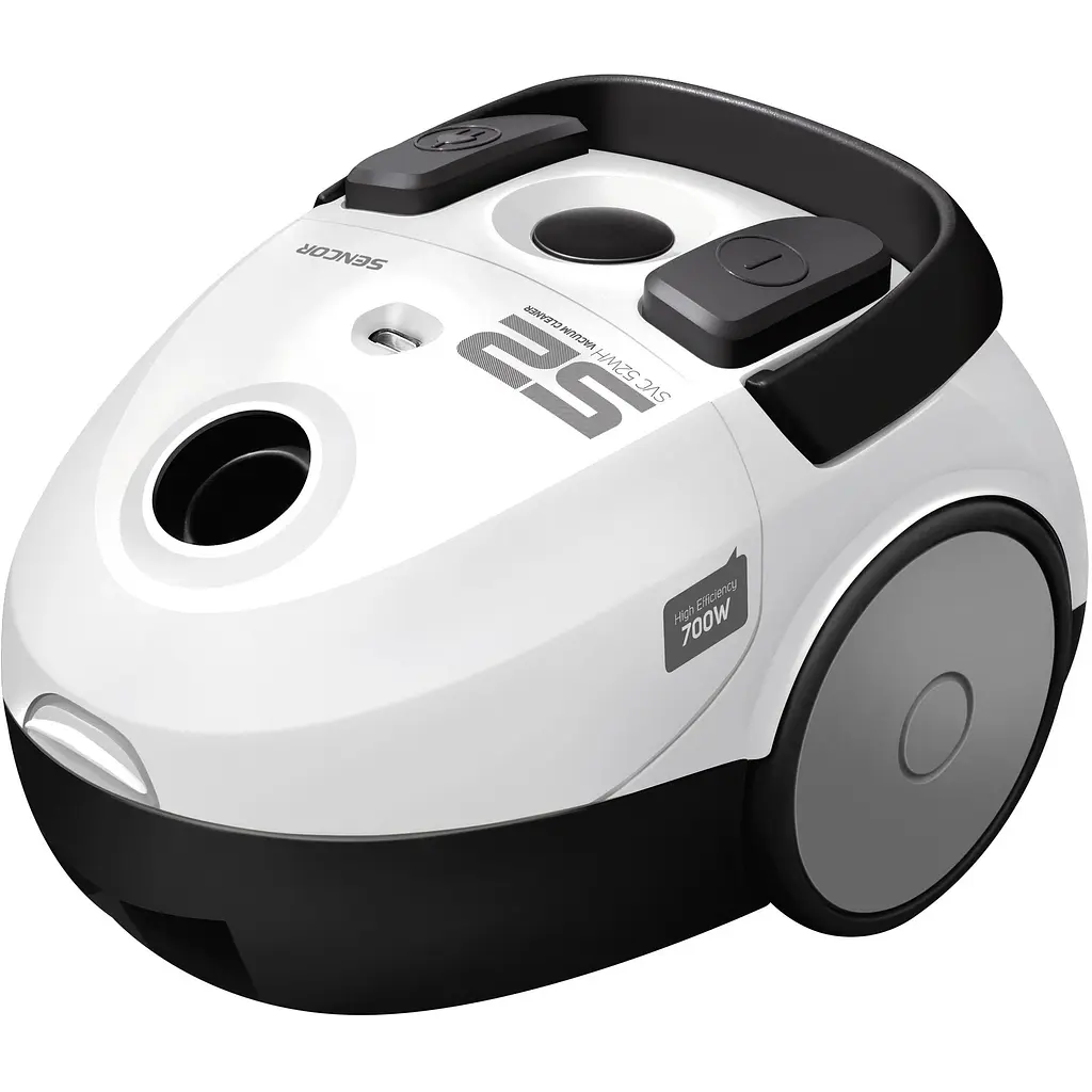 Пылесос Sencor SVC 52WH-EUE3 для сухой уборки с энергосберегающим двигателем имеет потребляемую мощность 700 Вт и одноразовый мешок объемом 1.5 л с пятиступенчатой системой фильтрации. Оснащен телескопической трубкой из нержавеющей стали, насадками пол/ковер и щелевой 2 в 1, индикацией заполнения пылесборника, прорезиненными колесами и возможностью вертикального и горизонтального хранения. Предусмотрено автонамотка шнура и защита от перегрева. Питание от сети, класс энергопотребления A.