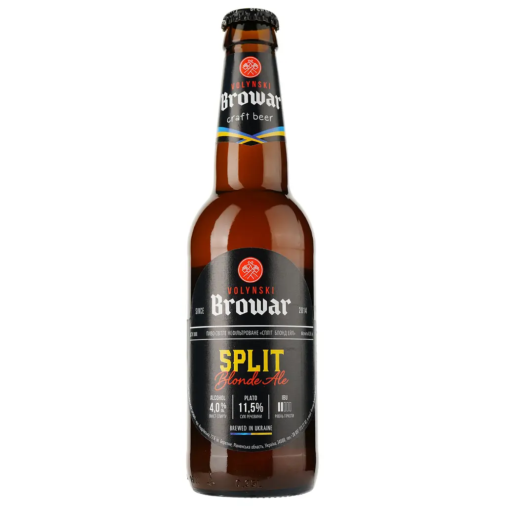 Особенности: Согласно BJCP Style Guidelines, Split лучше всего соответствует стилю Blonde Ale. Этот стиль характеризуется умеренной солодовостью, легким телом, относительно низким уровнем горечи и отсутствием ярко выраженных фруктовых или эфирных нот. Пиво имеет начальную плотность 11.5% и очень низкий уровень горечи 18 IBU, что подчеркивает его мягкость. Крепость составляет 4.0%.