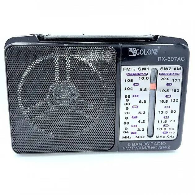 Радиоприемник Golon RX-607 AC – компактное устройство с частотным диапазоном FM (64-108 MHz), SW (3.6-22.0 MHz) и AM (530-1600 kHz), обеспечивающее качественный прием радиостанций. Работает от сети 220 В/50 Гц или двух батареек (тип не указан), обеспечивая гибкость использования. Оснащен механической регулировкой громкости и механическим поиском частот, что облегчает настройку.