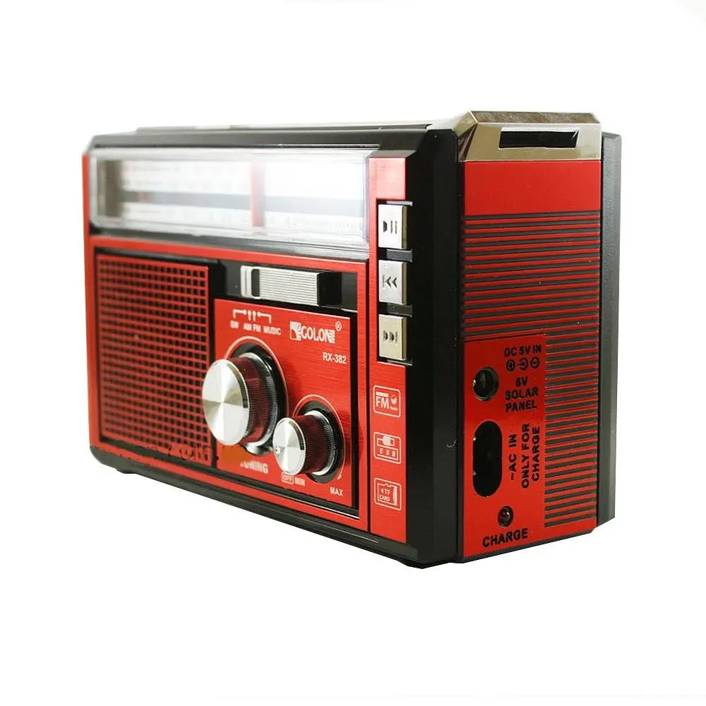 Радио Golon RX-382 BT – многофункциональное устройство, которое может выступать не только в качестве радио, но и в качестве акустики благодаря поддержке SD, USB и mini SD. Благодаря караоке-входу его можно использовать как мегафон, а встроенный фонарь прибавляет практичности. Оснащенное встроенным аккумулятором, заряжаемым от сети 220 В, и удобной переносной ручкой, оно станет верным помощником для разных ситуаций. Имеет аналоговый тюнер, картридер и разъем USB для расширенных возможностей.