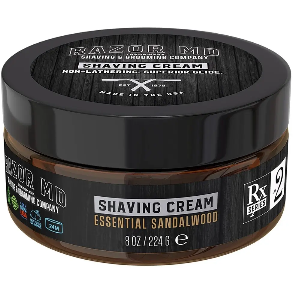 Крем для бритья Razor Shaving Cream Essential Sandalwood не содержит мыла, не пенится и имеет более низкий уровень pH, чем средства других производителей. Помогает предотвратить пересыхание и раздражение кожи.