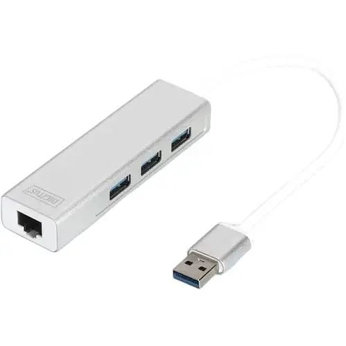 Быстрая передача данных благодаря USB 3.0 и гигабитной локальной сети USB 3.0 Digitus DA-70250-1 Hub, 3-port, 3-портовый адаптер HUB & Gigabit LAN, 3xUSB A/F, 1xUSB A/M, 1xRJ45 LAN, Win/Mac OS