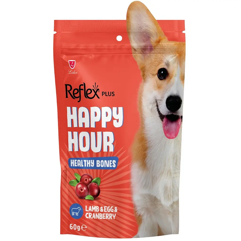 Лакомство для собак Reflex Plus Happy Hour разработано для счастливых часов. Поддерживающее лакомство для собак для здоровых костей.
