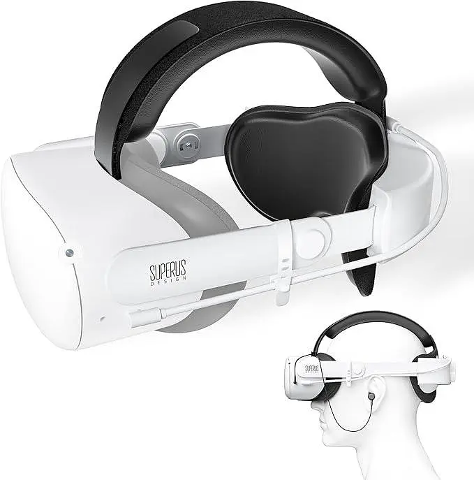 Ремешок для аккумулятора SUPERUS для Quest 2 с гарнитурой, сменные аксессуары для регулируемого ремешка Elite для Meta/Oculus Quest 2 – продлевает время игры и снижает давление на голову.